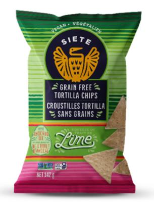 CG7228 : Siete CG7228 : Confectionery - Chips - Lime Tortilla Chips (vegan) SIETE, lime TORTILLA CHIPS (VEGAN), 12 x 142g
